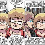 Every month at the Dumbing of Age Patreon there’s two new exclusive bonus strips — one that patrons get to vote on, and another that’s my choice!  This month, JOCELYNE got 80 votes!  I wonder if she’d still have gotten 80 votes if folks’d known she was showing back up in the strip like in two days.  Probably!  Read this bonus strip and hundreds of previous at the Dumbing of Age Patreon! Also, if you pledge up to $5 or more per month, you can read TOMORROW’s strip RIGHT NOW, every day!