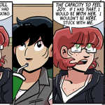For 99% of you, Dorothy Keener is a new character. Her only appearances in the Old Continuity are in Joyce and Walky!, and almost entirely in the subscriber-only material. So don’t worry if you don’t know her. After all, you’re not “required” to, same as everyone else in Dumbing of Age. It’s a clean slate for everyone.