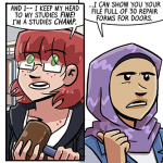 For 99% of you, Dorothy Keener is a new character. Her only appearances in the Old Continuity are in Joyce and Walky!, and almost entirely in the subscriber-only material. So don’t worry if you don’t know her. After all, you’re not “required” to, same as everyone else in Dumbing of Age. It’s a clean slate for everyone.