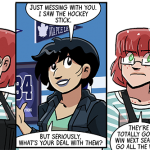 T Campbell and I are sitting adjacent to each other at Intervention this weekend, and we’ve been talking about the problems plaguing aging male artists attempting to nonlaughingly clothe teenagers. How do those Archie folks do it?