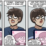 First of all, after today’s strip everyone should probably recognize where the site’s wallpaper comes from. Yeah, it’s the actual tile pattern from the real-life lobby of Read Hall, which is where the strip’s characters live. I liked it so I’m using it!