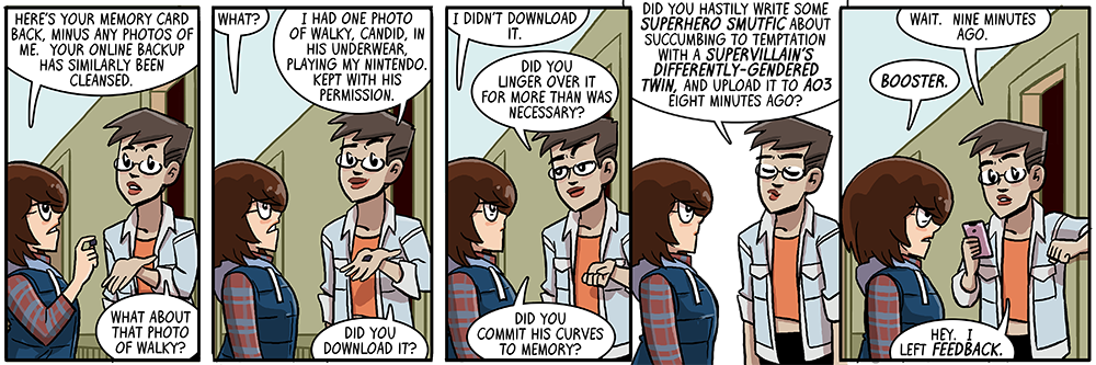 2. It’s not just the time to scrub a memory card, but also find and cleanse the online backup. Depending on how sophisticated Booster’s service’s security is, and how zealously Amber opted to go after the additional copies Booster made of it in the meantime, I could imagine this fan fiction may have even made it up to a few thousand words.