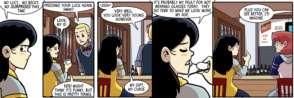 Also, from that strip, it’s not clear that Billie was expecting him to be able to buy her beer, but that what he thought she wanted. I think she was just looking for the prestige of hooking up with an upperclassman.
