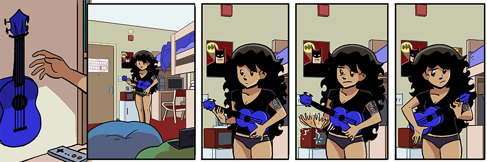 2. I had to follow back up on a couple of things via their character tags: she frets guitar with her left hand, like most right-handed people. Danny frets the ukulele with his left hand, so it’s not likely laid out for fretting with the right hand.