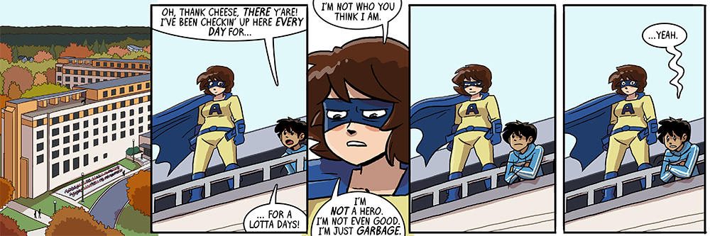It feels like Amber is essentially leading up to solving the personality split by committing suicide of the Amber personality and leaving AmaziGirl in full time possession, including creating a new secret identity”Amber” that’s molded to fit the AmaziGirl persona if needed. Troubling to say the least.