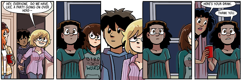 5. Yeah, it’s more the fact that when she gets there, sees the cups and booze, gets questioned twice on it, and her answer is just “People like board games, Sarah.” It’s like her telling her whole floor that movie night is going to be Flight of the Navigator and being positive that everyone will love it, despite literally no one being interested and no one showing up.