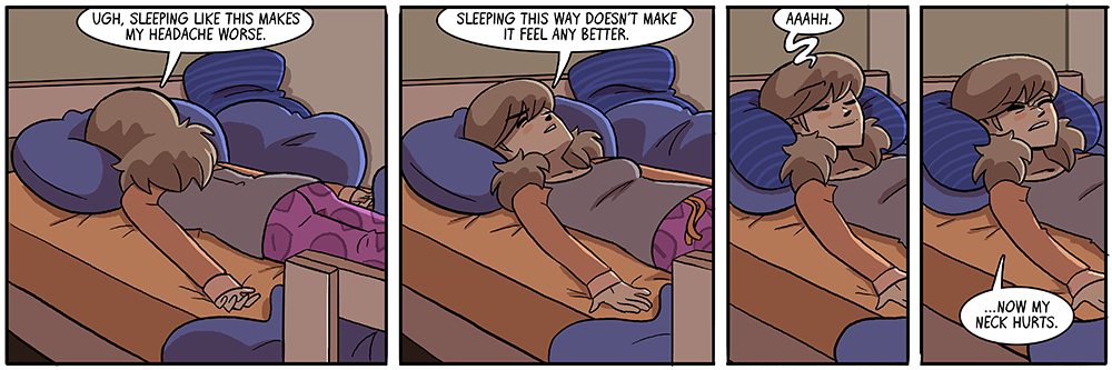 Joyce needs to invest in one of those shaped memory pillows, they make sleeping much easier, even when I have a migraine. A bonus as well, if you want to sleep on your side instead of your back it can be adjusted for that.