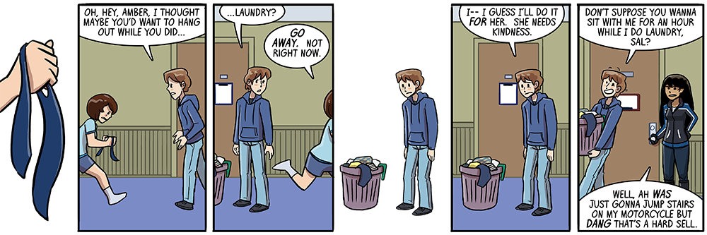 • Trying-to-be-a-good-friend!Dan takes care of Amber’s laundry.