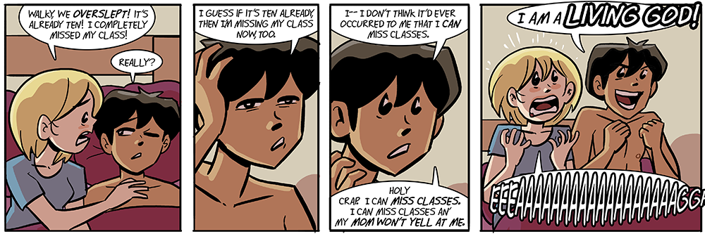 48. This was the best realization I’d ever had. I could skip classes and chill or whatever? Fuckin’ A!