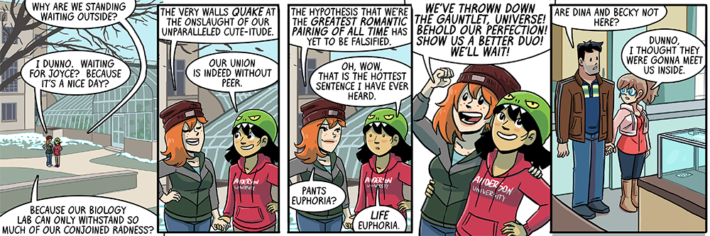 I’ve never found Dina and Becky all that cute. They’re probably the best couple in the comic, but that’s because everyone either broke up, or actively shouldn’t be together. I honest to god find both of their interactions with others more interesting than their interactions with each other.