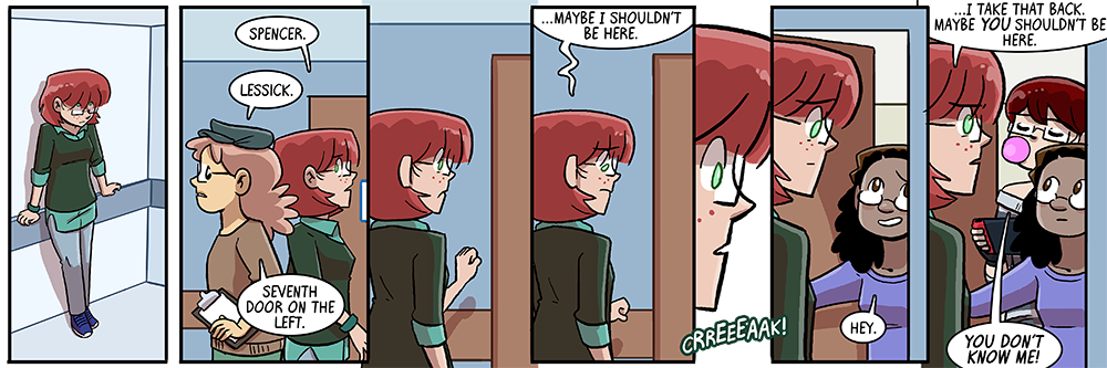 1. This strip strains my ability to care about who lives with who in which dorms and what their names even are, (dorms and characters), but lots of people seem to have those mappings down no problem.