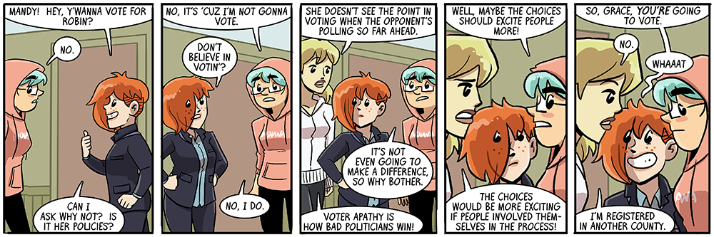 1. (I’m not sure how close the election is in-comic; IDK if Grace’s deadline has passed)