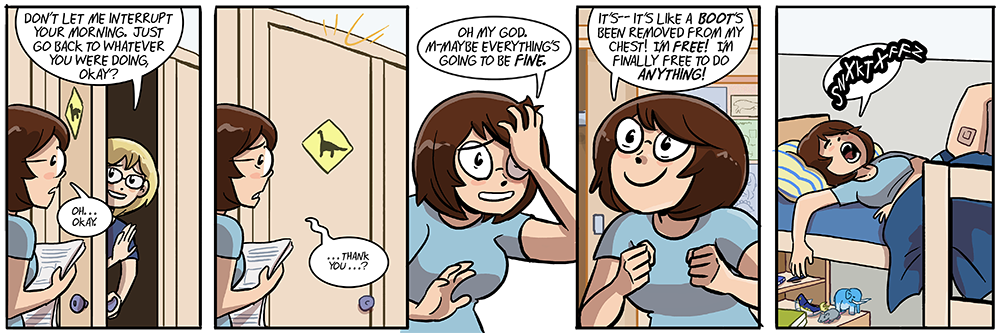 My guest week is still running over at Girls With Slingshots as Danielle travels across the country! Also, the Dumbing of Age Patreon hit $1k yesterday! Just under $500 more until Patreon pledger folks get a bonus monthly DoA strip. Until then, they merely get tomorrow’s strip early. Pfffft, whatever.