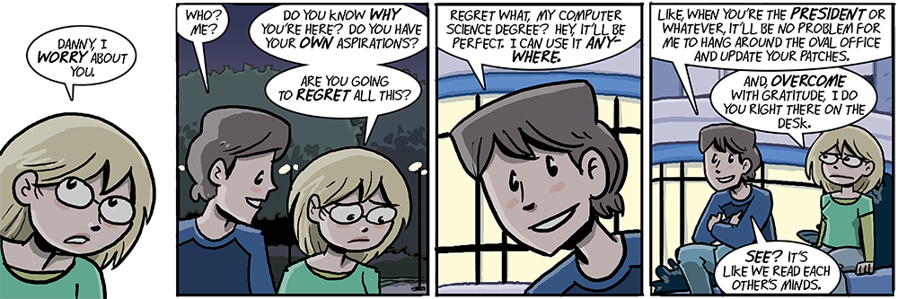 I made sure a very early strip didn’t have a humorous punchline so that no one could go “OH WELL THE DRAMA TAG GOT PULLED” later on when other serious stuff happened. It didn’t work. folks think they’re hilarious
