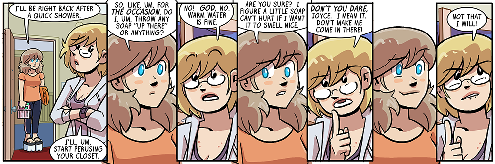 The Book 14 Kickstarter has FIVE DAYS LEFT! A REMINDER THAT YOU CAN READ TOMORROW’S STRIP EARLY ON PATREON, AN ANNOUNCEMENT NOW IN ALL CAPS TODAY FOR SOME REASON, PROBABLY RANDOMLY