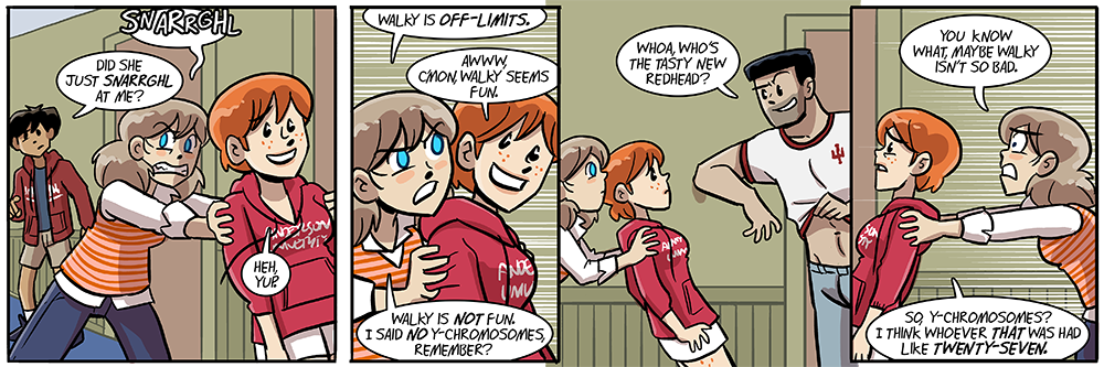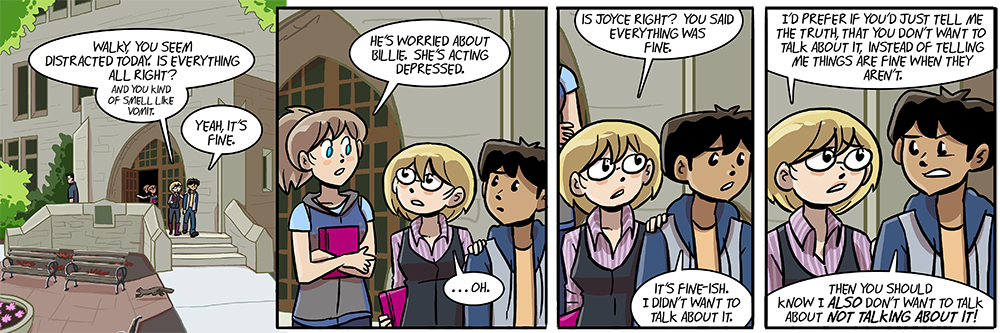 Ruth returns to Woody After Hours! The webcomic talk show will be interviewing her M/W/F for the next two weeks or so. Let’s see how she likes the ol’ question and answer. (Someone’s probably gonna get punched.)