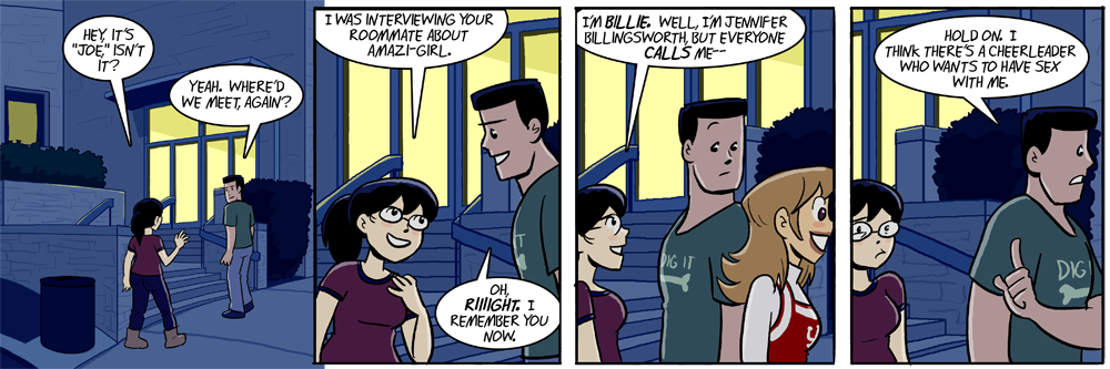 For a while I couldn’t recall if I’d ever presented Billie’s full, real name in the strip before. And then I remembered, oh, duh, it’s the first damn thing she says.