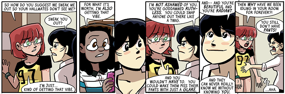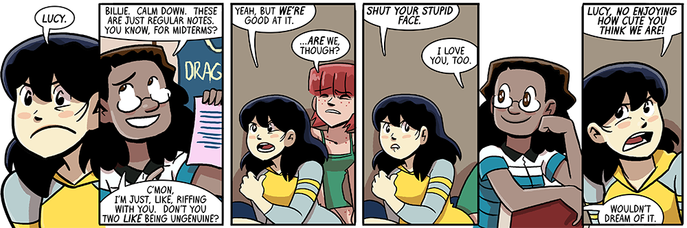 The bonus strip flashback saga of How Jocelyne Got A Cat continues over at the Dumbing of Age Patreon! All patrons can go check it out. And if you pledge accordingly, you can read tomorrow’s strip early! Today, even!