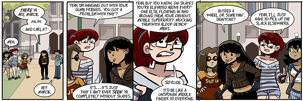 The first of two monthly bonus strips is up on the Dumbing of Age Patreon! This month, folks voted for Dina, and so Dina gets her own bonus strip. I’m surprised it took this long.