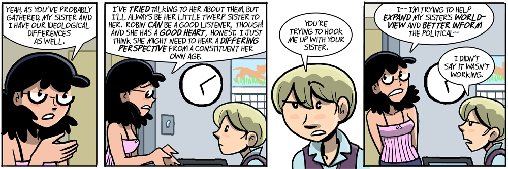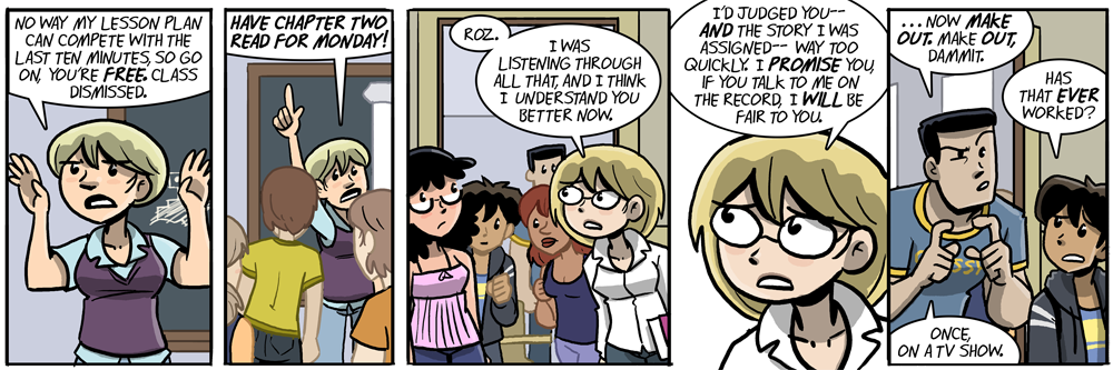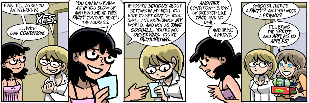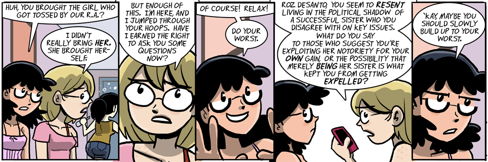 Tomorrow is Dumbing of Age‘s first anniversary, so you get a Saturday strip! It’s not gonna be a special strip or anything, just what would have been the next strip anyway, but, woo, Saturday strip! See y’all tomorrow, for reals.